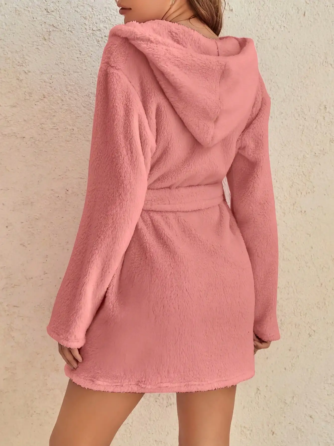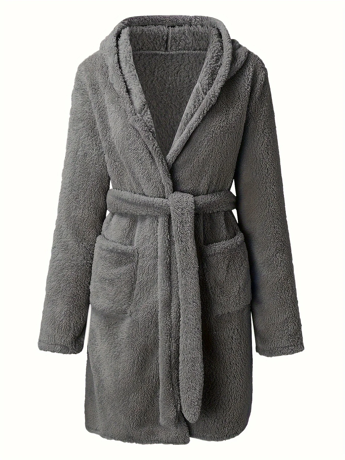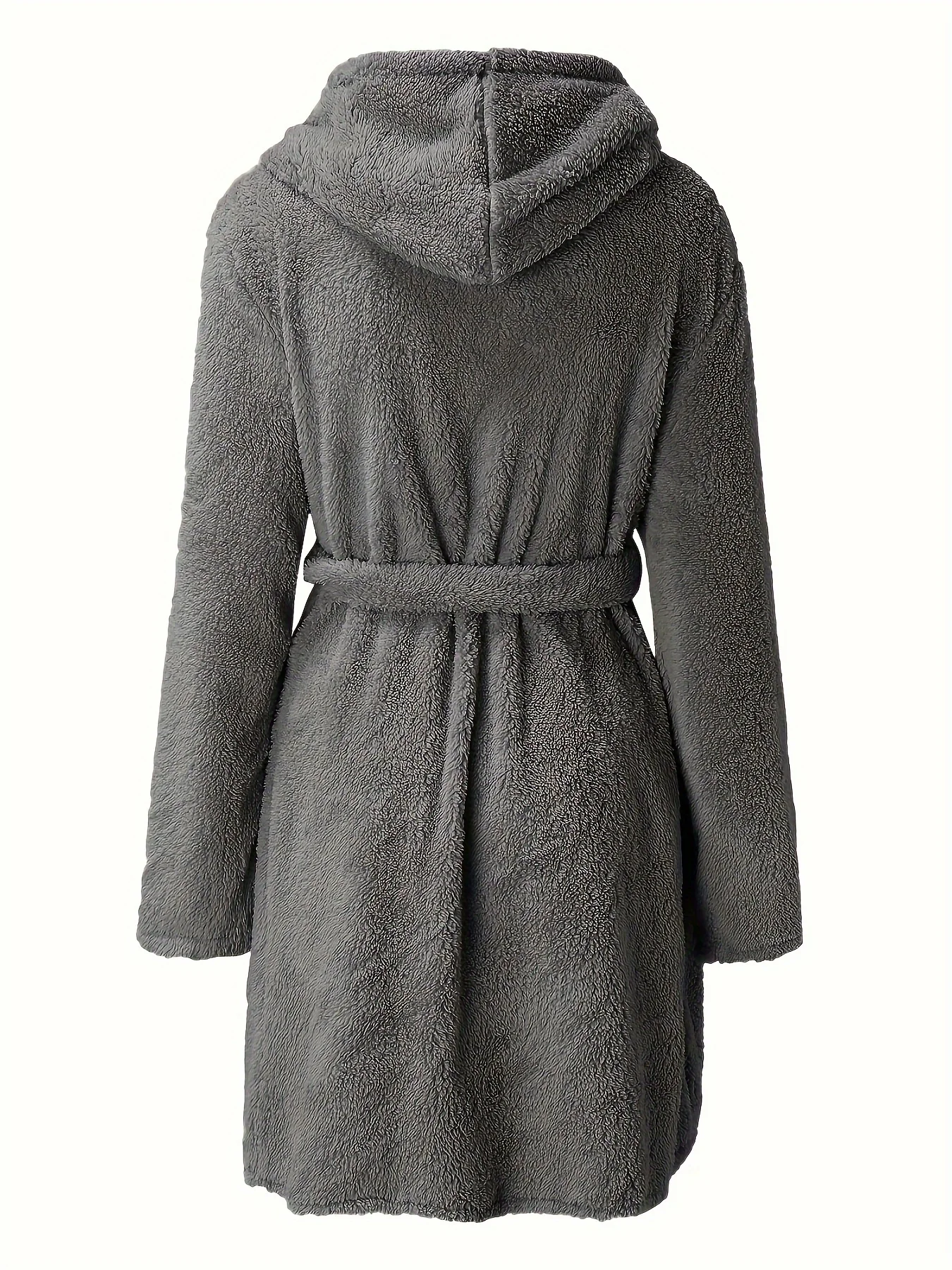 1 piece of women's solid color hooded robe with belt, cozy and warm fleece pajamas for home wear in autumn and winter.