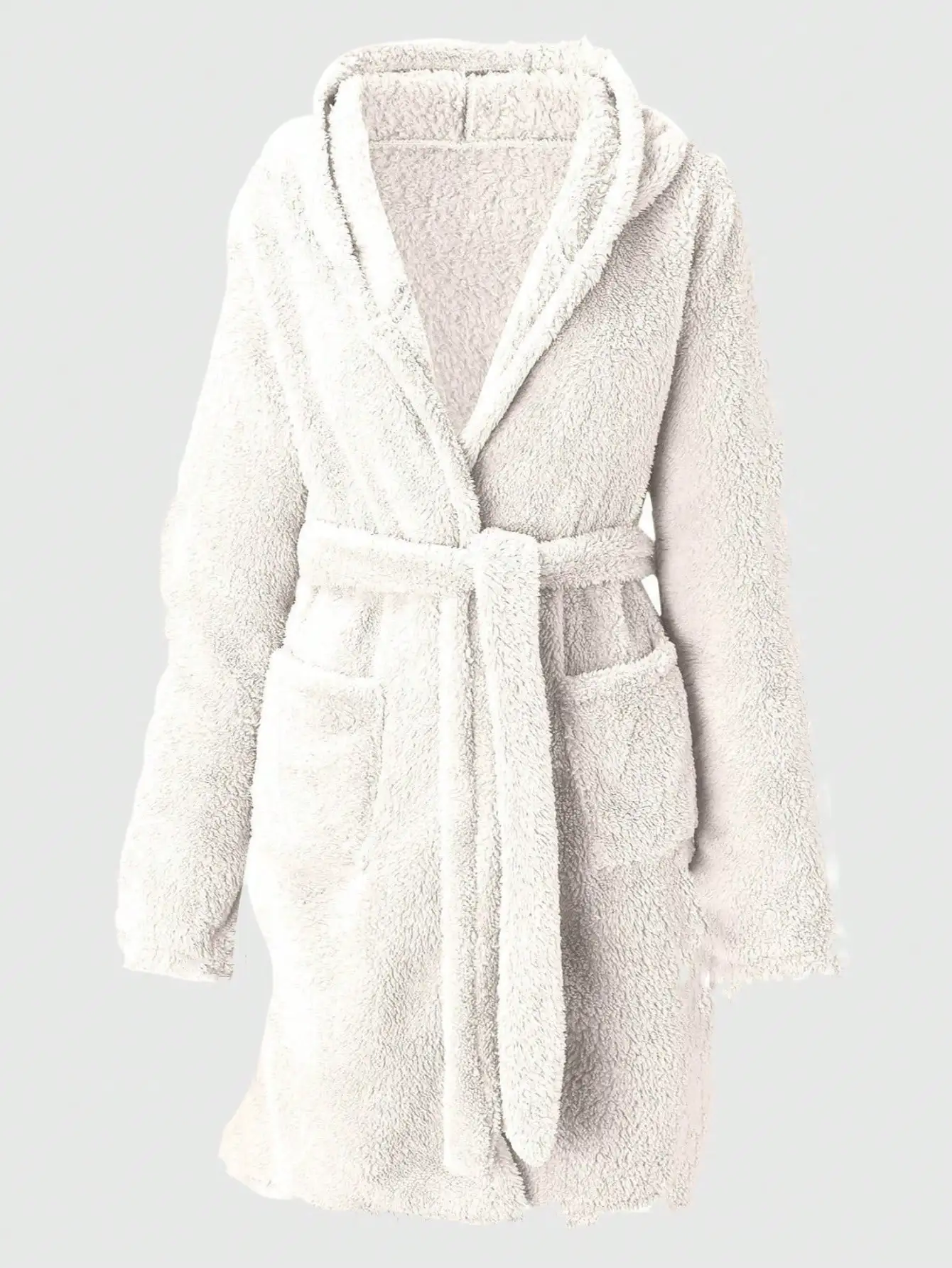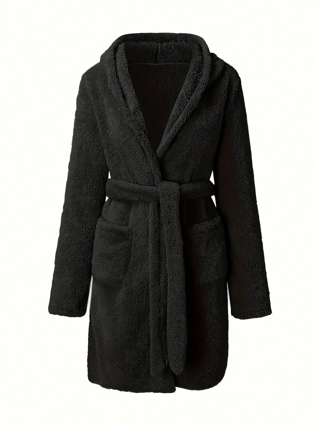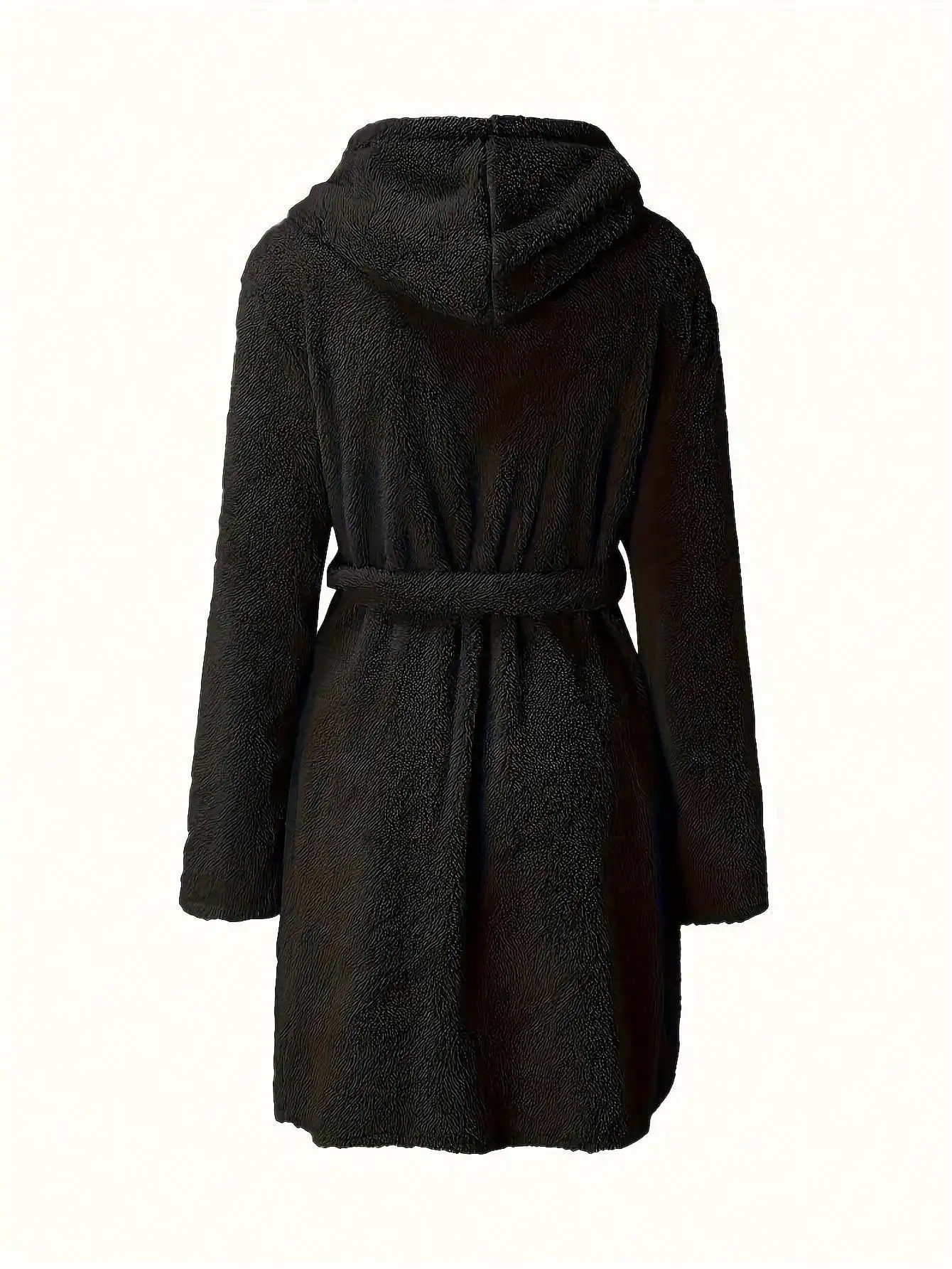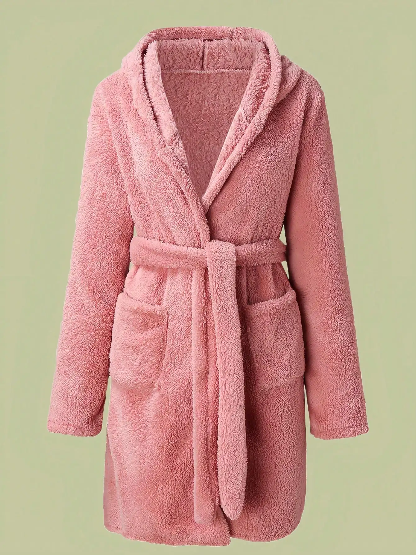 1 piece of women's solid color hooded robe with belt, cozy and warm fleece pajamas for home wear in autumn and winter.