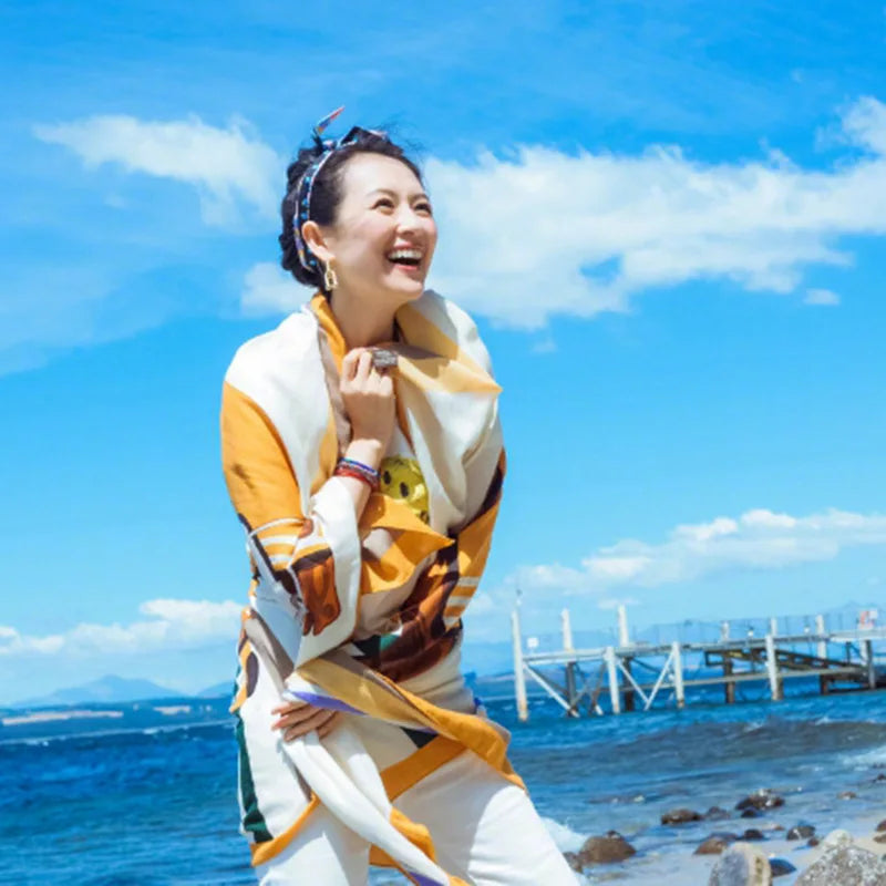 140x180cm Celebrity With The Same Cover-Ups Women Large Beach Dress Bikini Bathing Swimwear Sunburn Protection Sarong Wrap Scarf