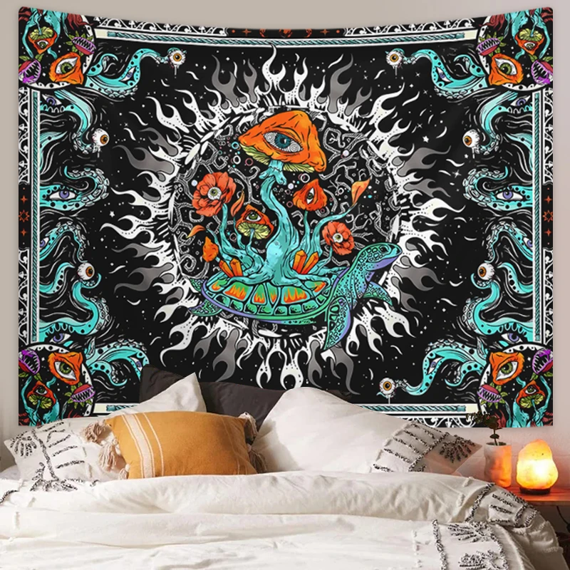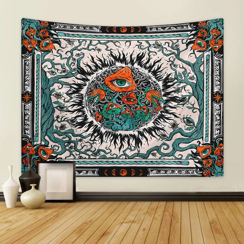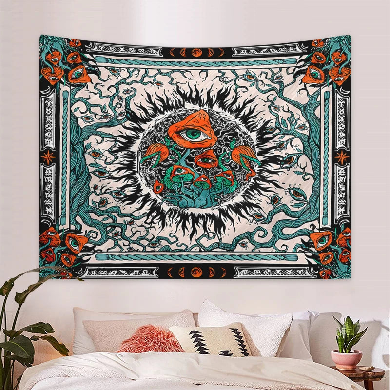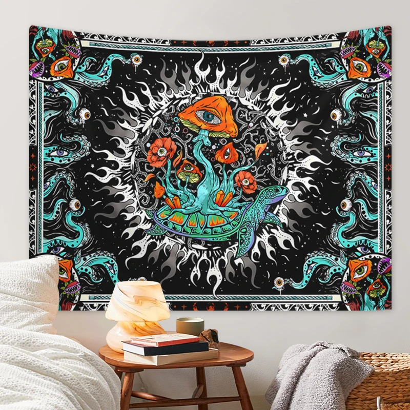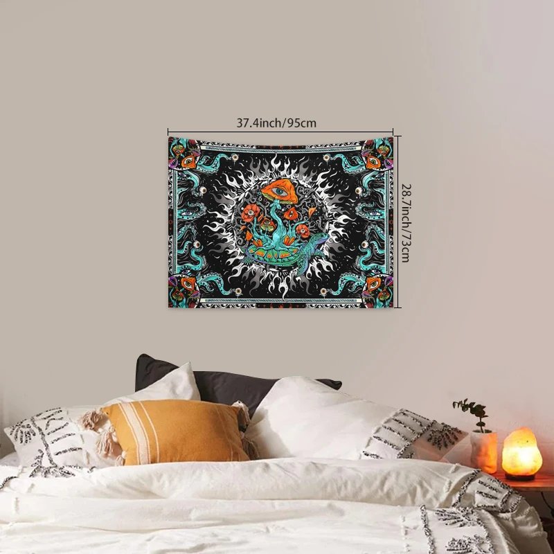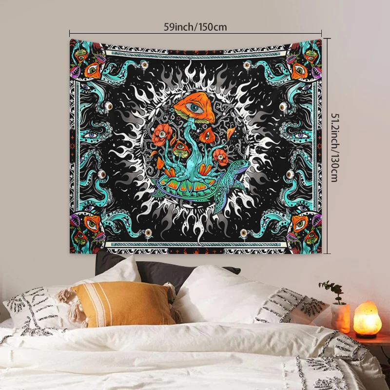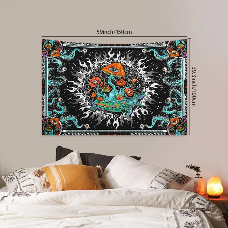 1pc Bohemian burning sun mushroom octopus tapestry, psychedelic eye marine creature tapestry