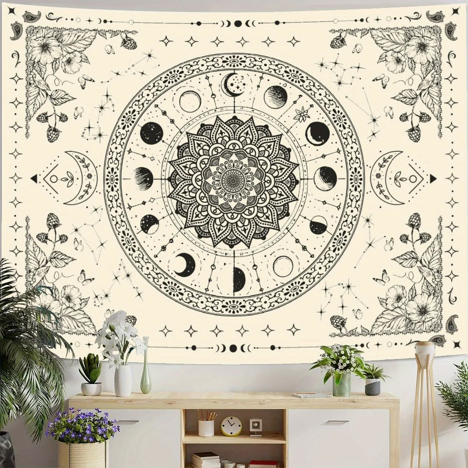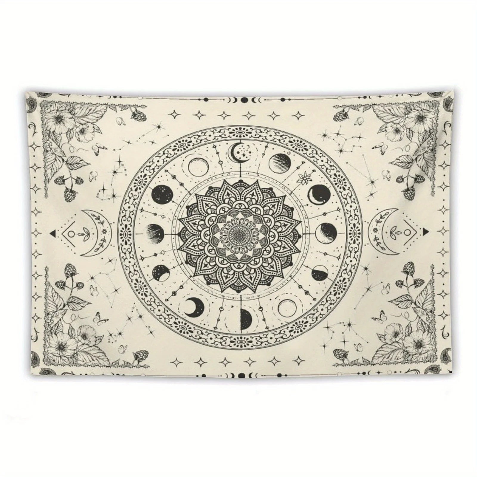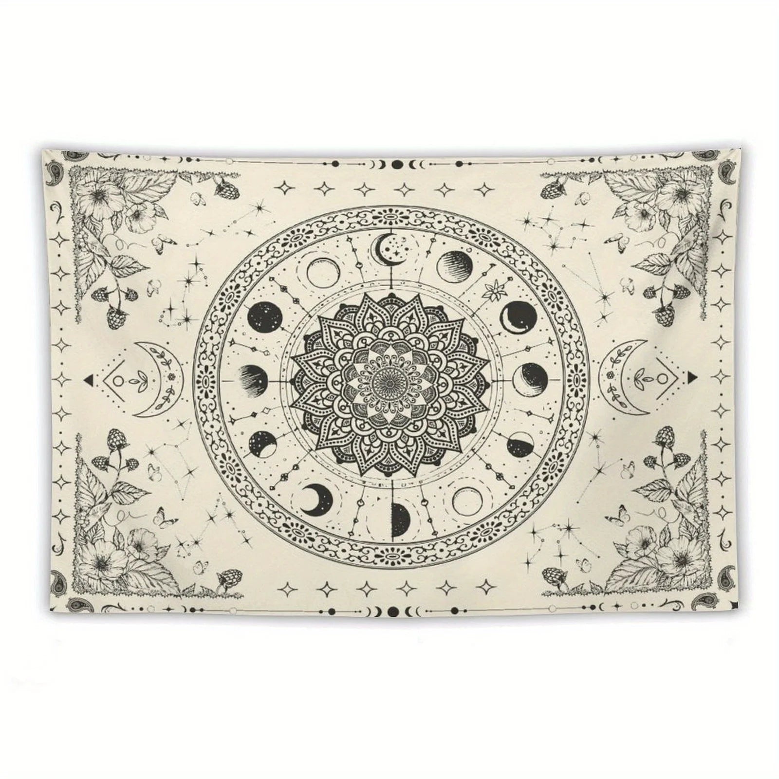 1pc Bohemian Mandala Floral Tapestry - Vintage Indian Wall Hanging with Celestial Moon and Stars Pattern for Bedroom Living Room
