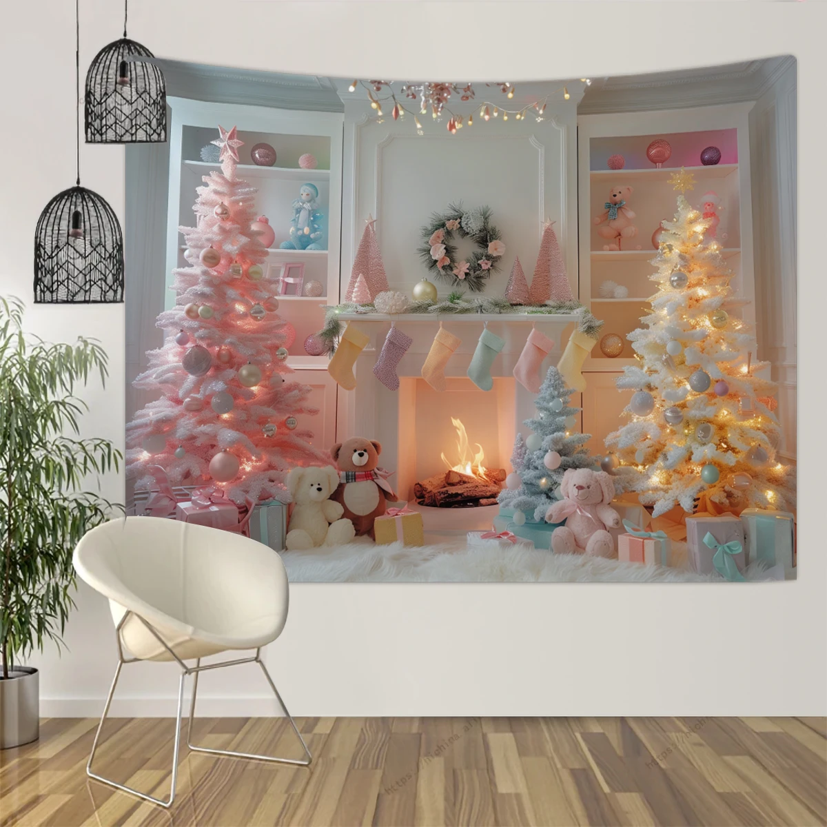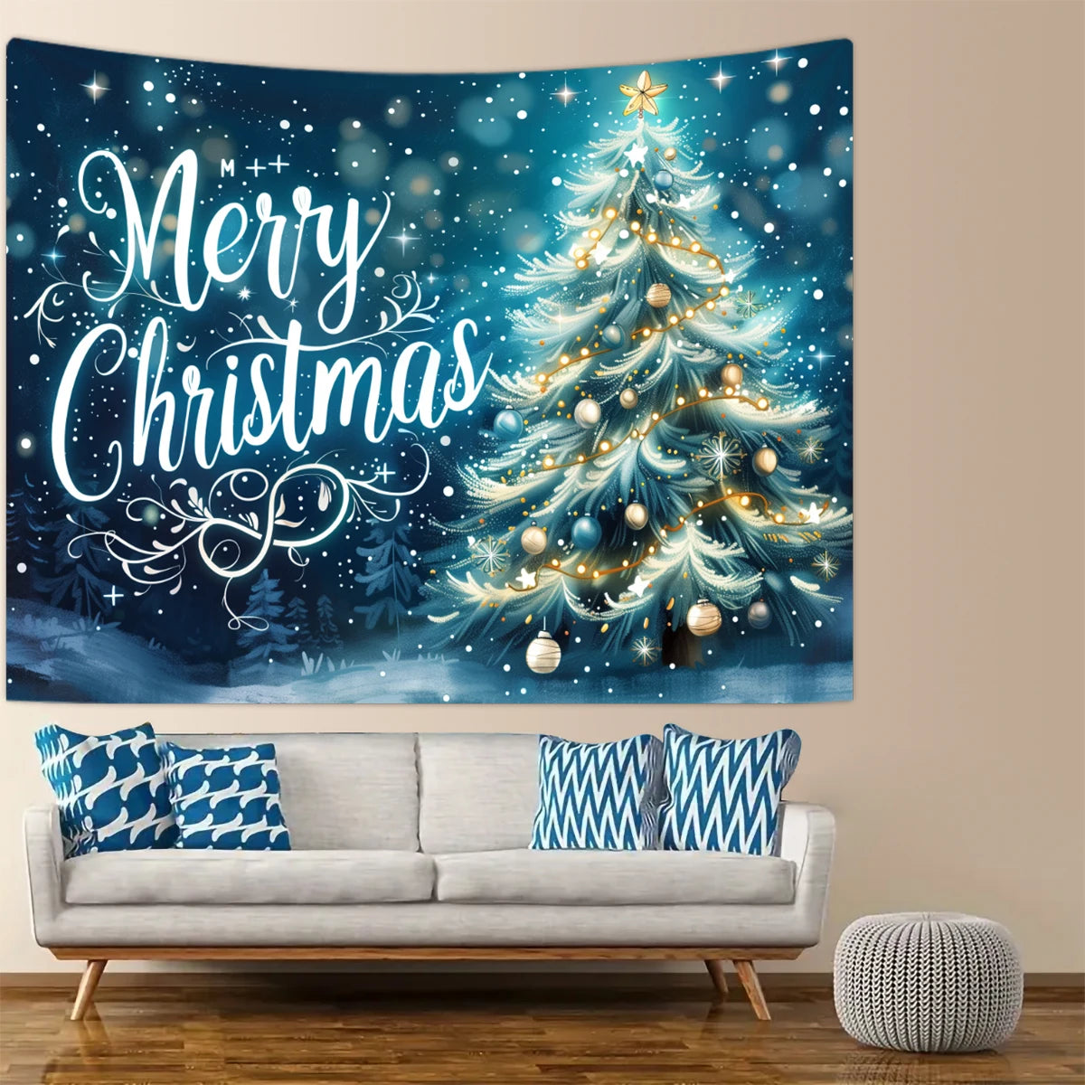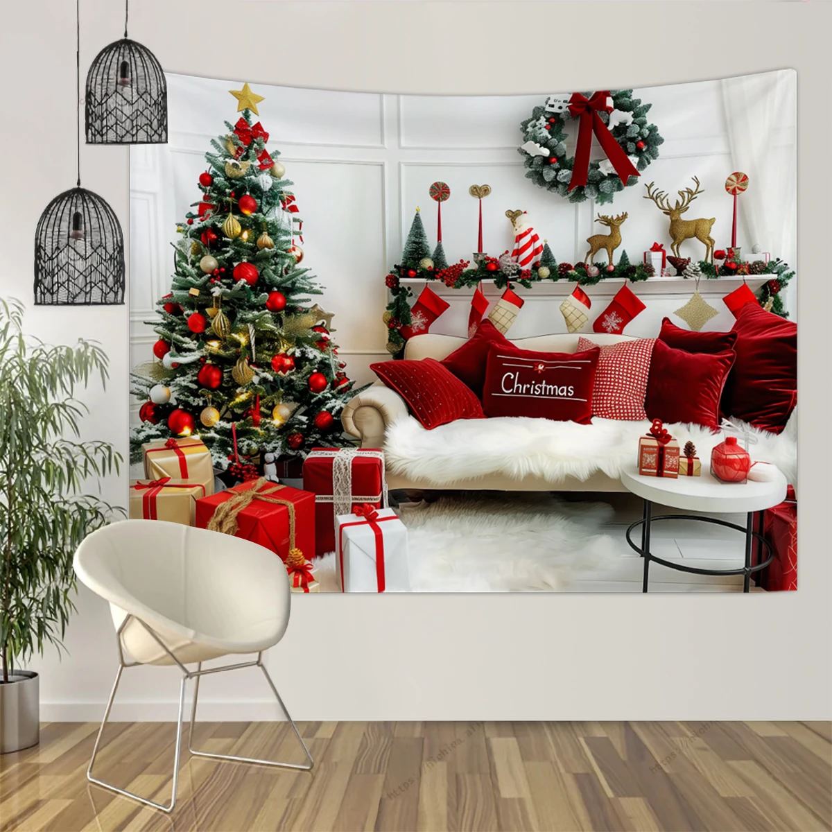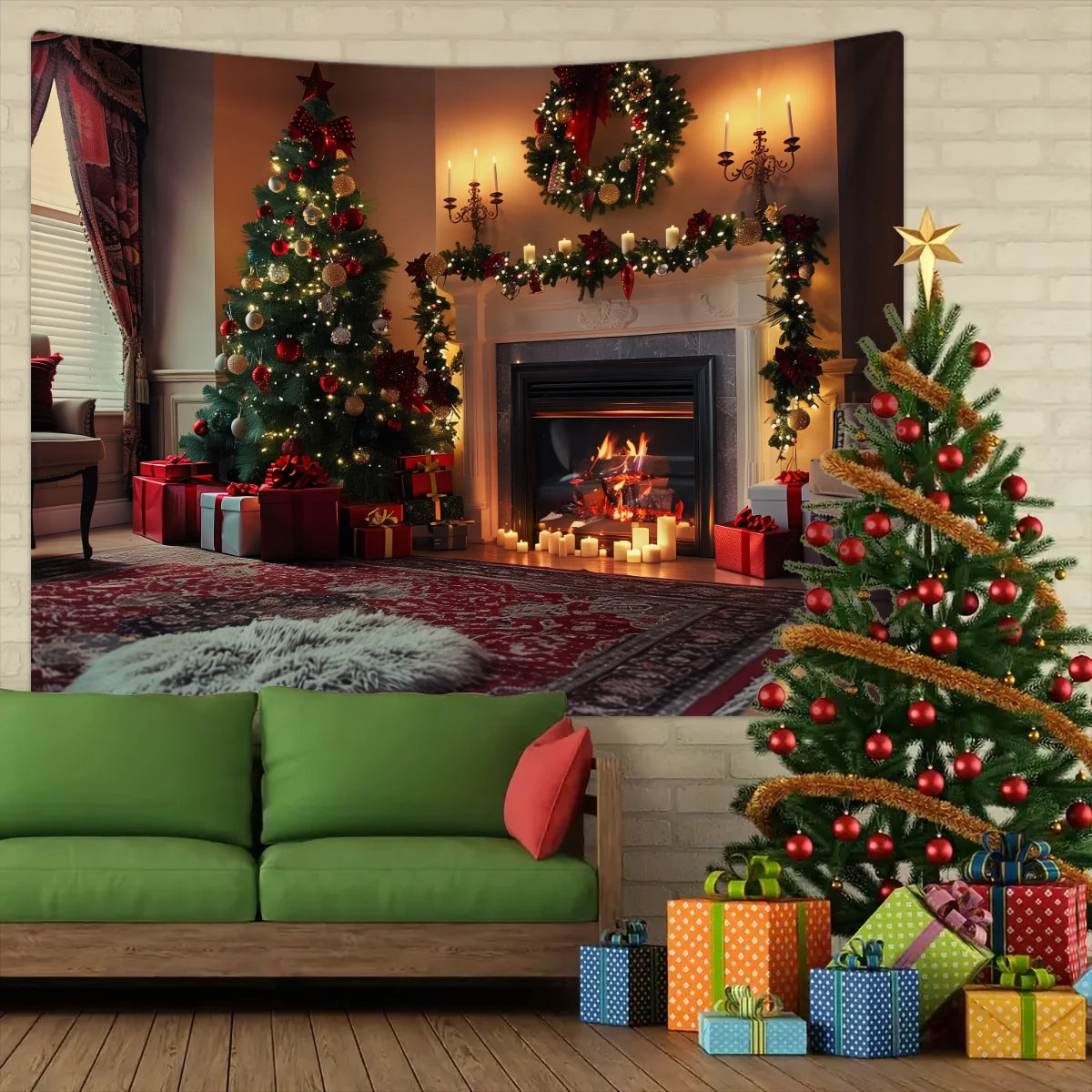1pc Christmas tapestry, snow background banner outside the Christmas tree window, Christmas fireplace tapestry