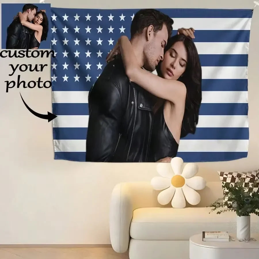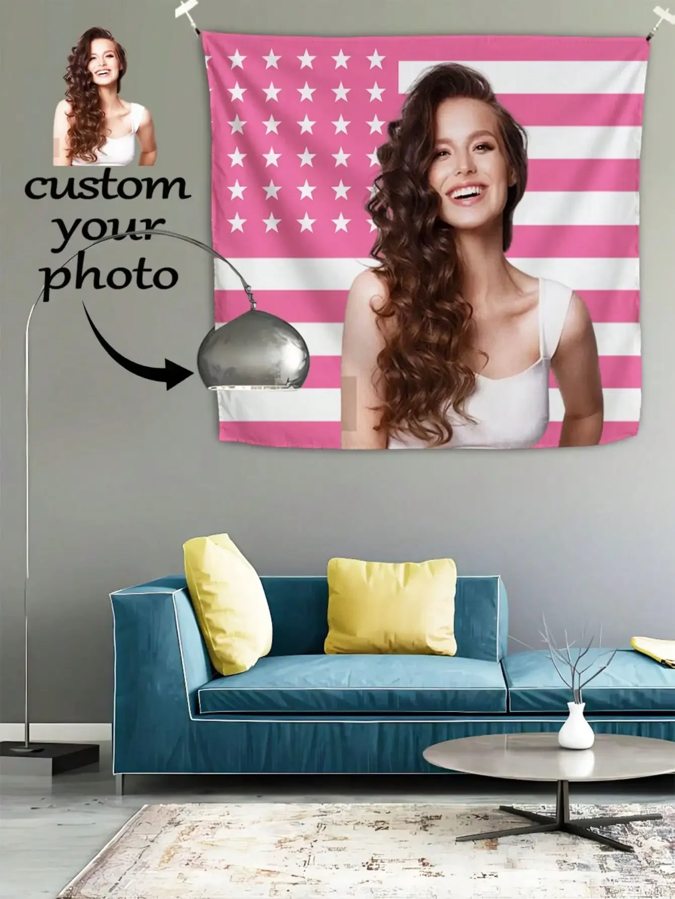 1pc Customizable Personalized Tapestry With Photos And Text, For Birthday, Wedding, Halloween, Christmas, Party