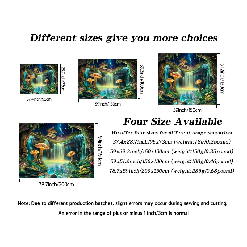 1pc Fluorescent fantasy mushroom forest tapestry, UV responsive waterfall landscape tapestry, psychedelic starry sky tapestry
