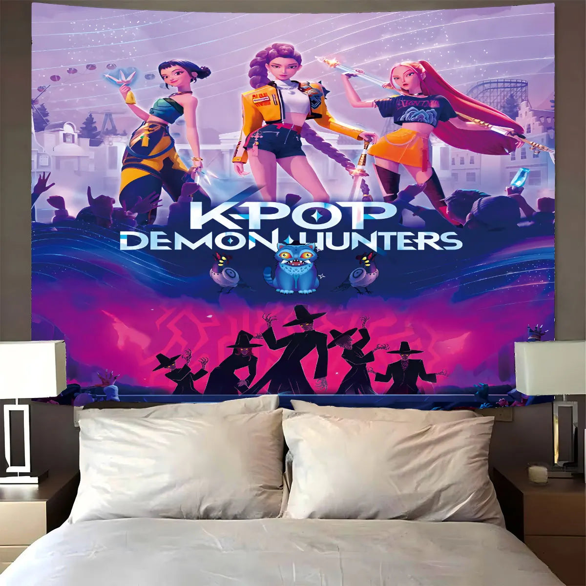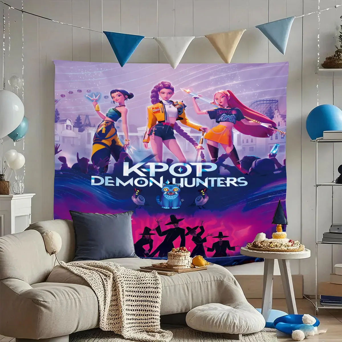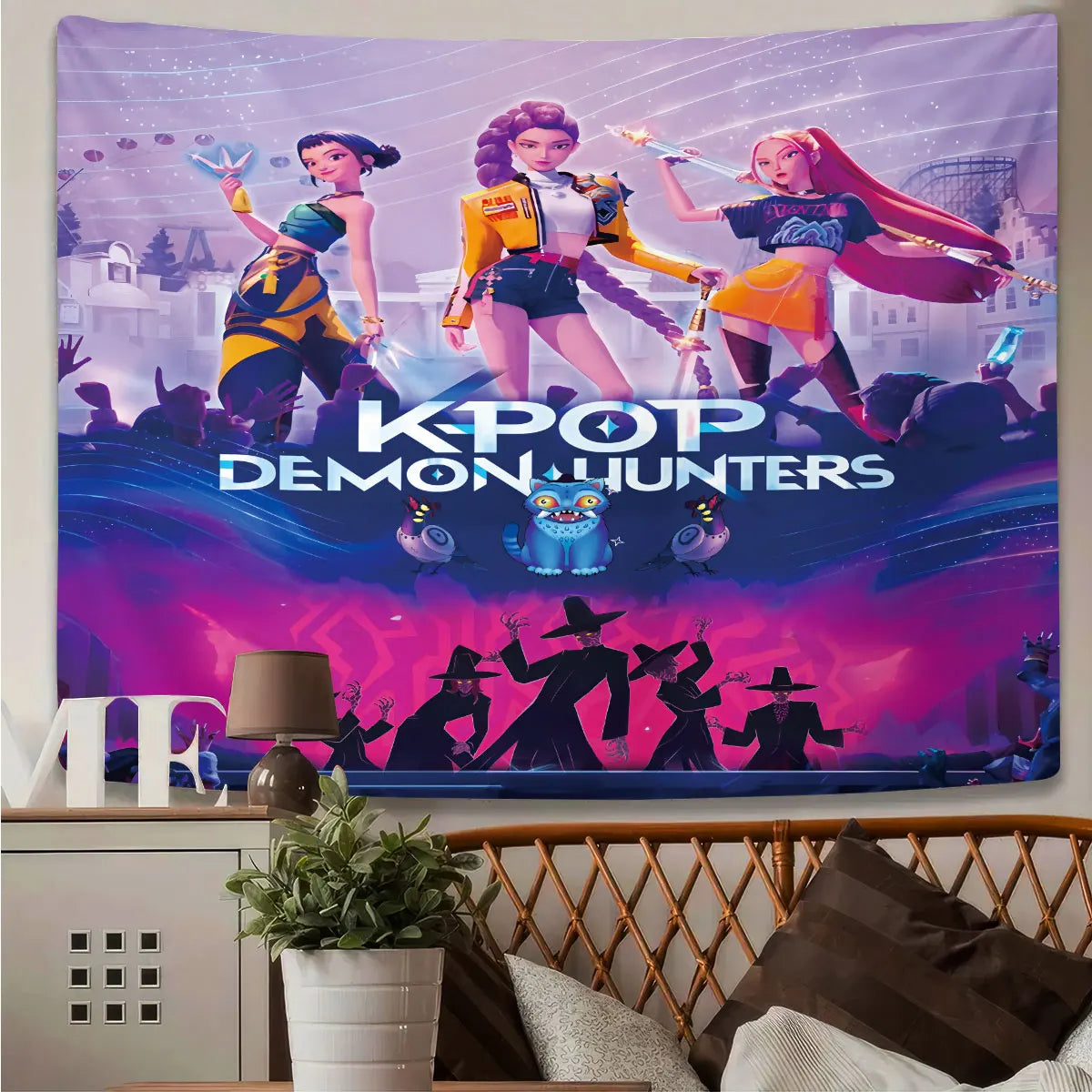 1pc K-Pop Demon Hunters Print Tapestry Multi Size Living Room Wall Decoration Background Cloth Machine Washable Space Pendant