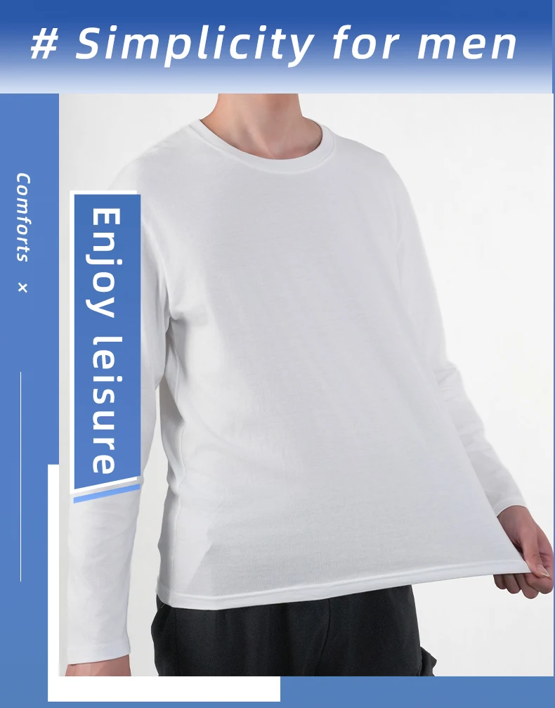 1PC Mens White Black T Shirts Casual Long Sleeve Top Cotton Moisture Wicking O-Neck Tees Tanks Classic Loose Tshirts for Men