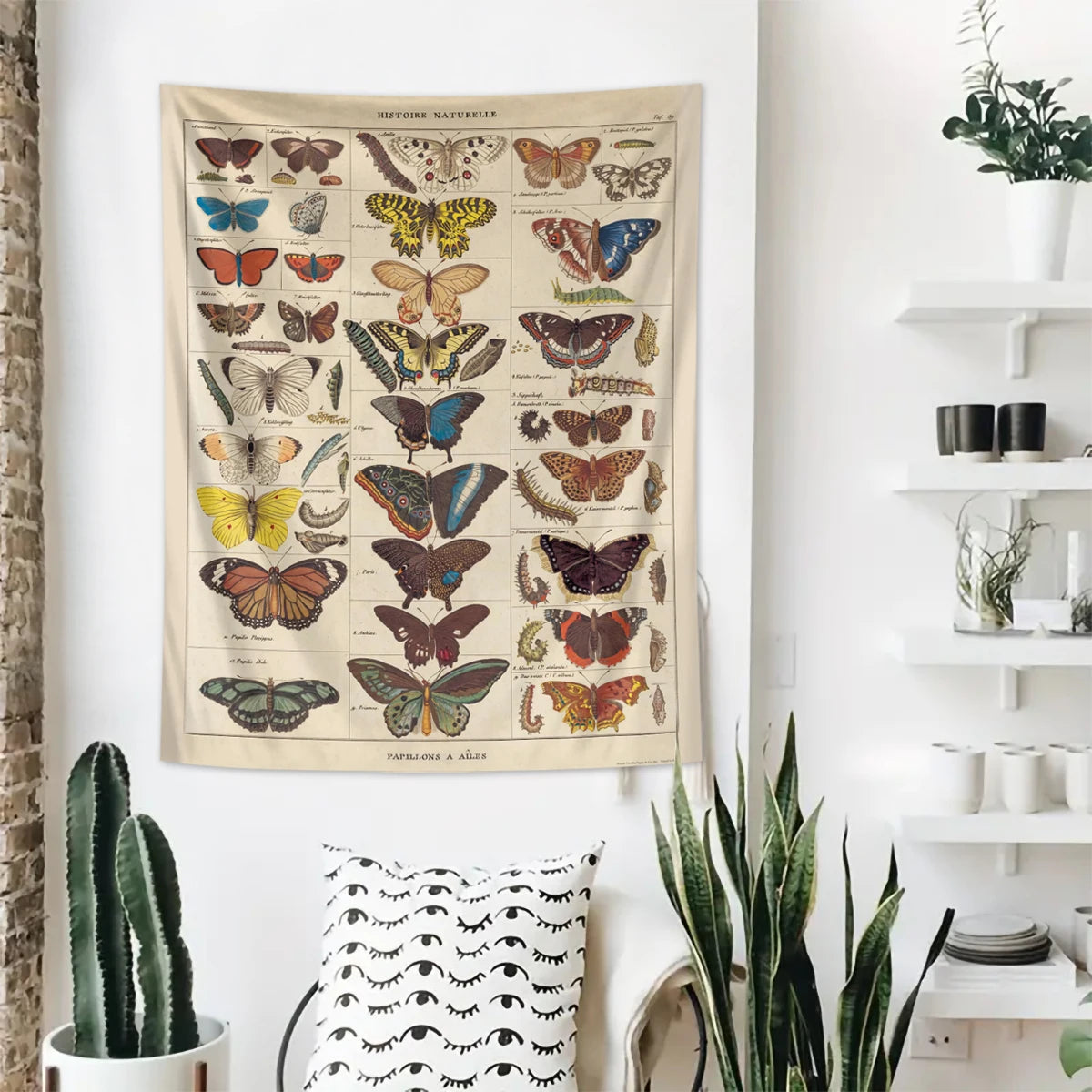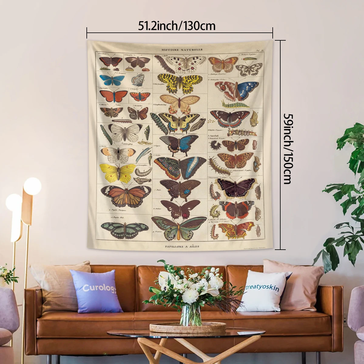 1pc Retro Butterfly Tapestry, Colorful Butterfly Retro Tapestry Wall Hanging, Insect Butterfly Tapestry Bedroom Decoration