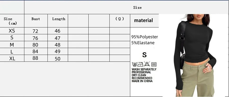 1pcs Four Seasons Fashion Senior Women T-shirt Long Sleeve Crew Neck Solid Slim Fit Tee Ladies Crop Top Daily Streetwear Camis