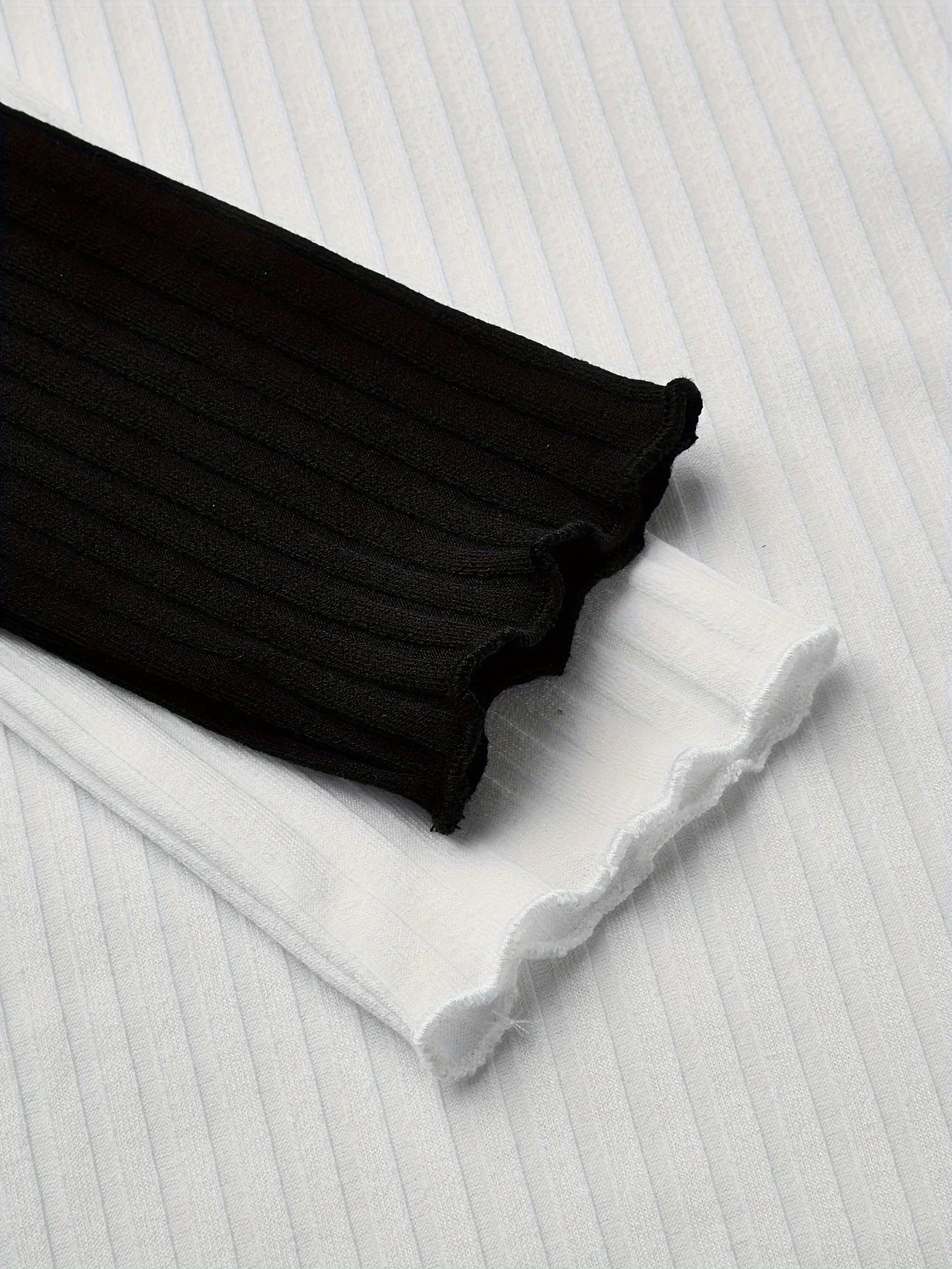 2 Pack Solid Crew Neck Crop T-Shirt Casual Long SleeveTop For Spring & Fall Women's Clothing