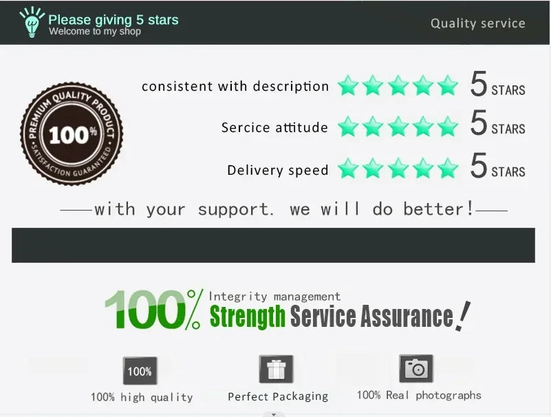 FEED BACK1. If you are satisfied with our products and services, please leave your positive feedback of 5 stars. And 5 stars for the detailed rating of your order. We will of course give your positive feedback. 2. If our porducts are not satisfied, please contact us before you leave negative feedback. We guarantee we will 100% solve any problem for you.