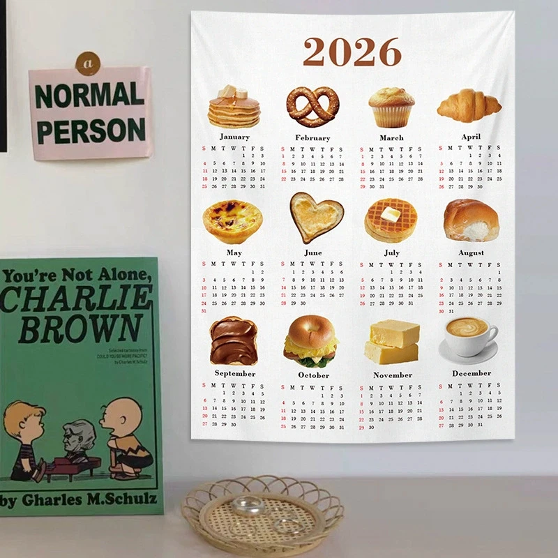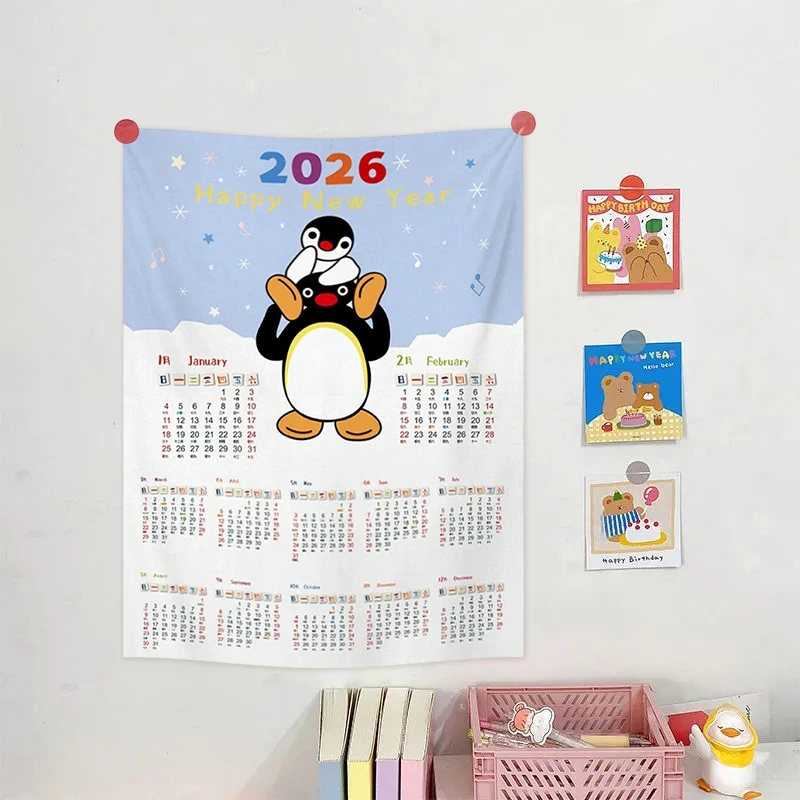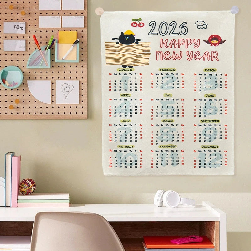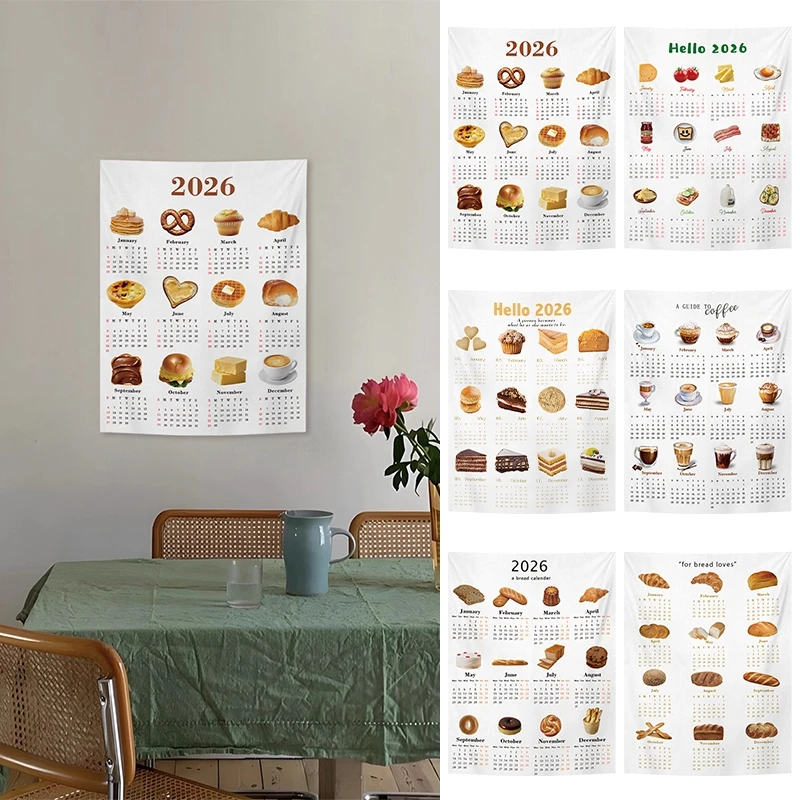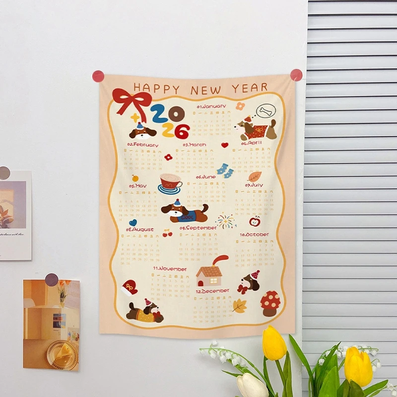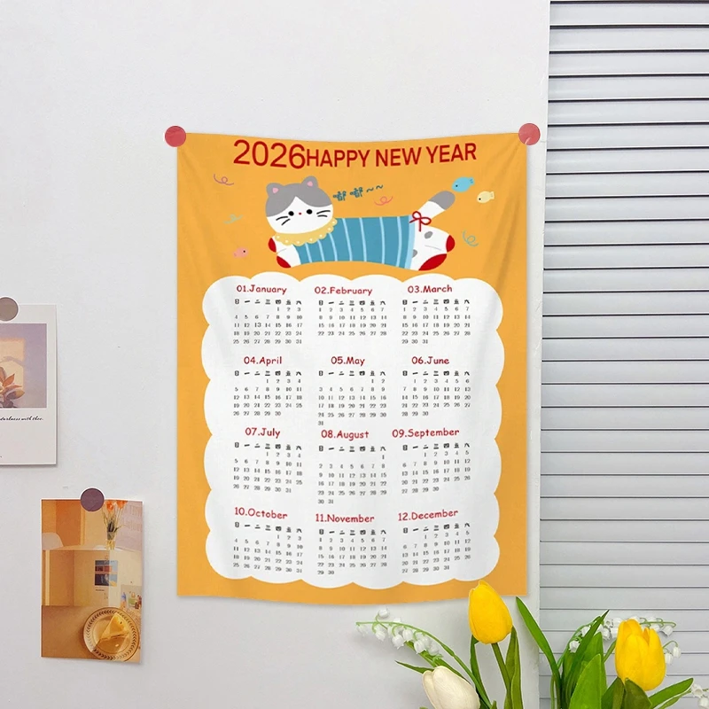 2026 New Year Tapestry 2026 Calendar Backdrop Cloth Dormitory Bedroom Decorative Background Cloth INS Wall Hanging Blanket