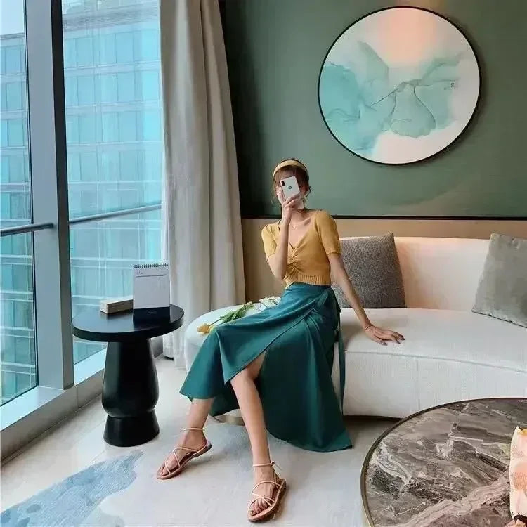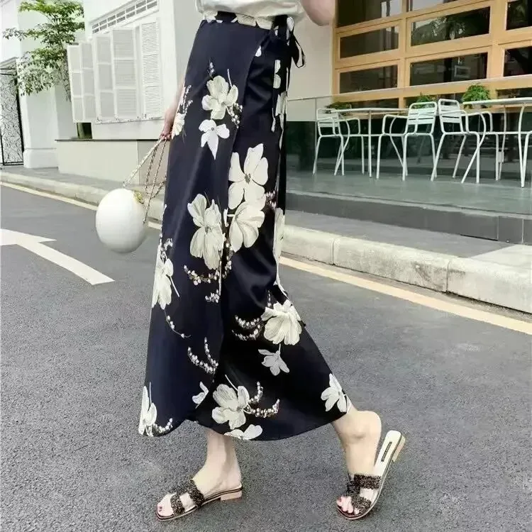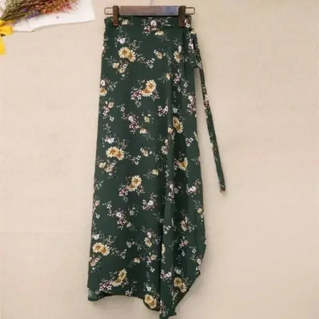 2026 Summer Beach Floral Skirt for Women Cotton High Waist Wrap Maxi Skirt Long with Side Slit & Tie Detail Boho Style Design