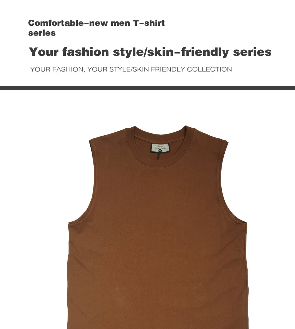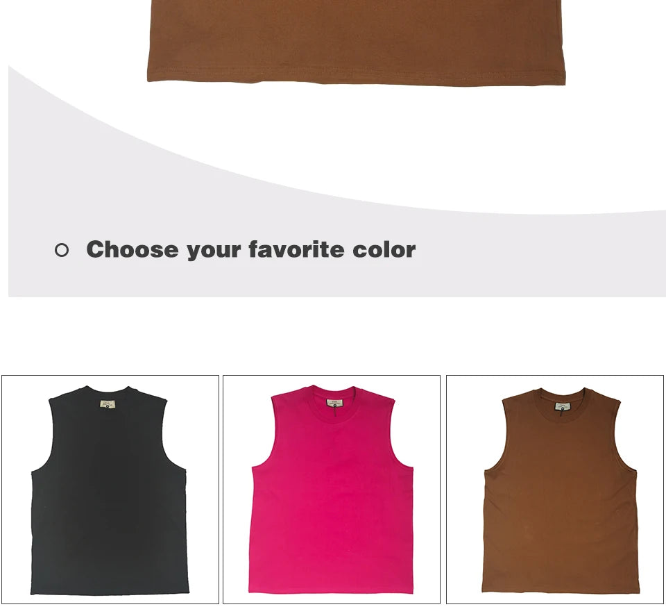 230Grams 100% cotton Vest Men Sleeveless T-shirt Heavy and Old Shoulder Retro Loose Unisex Vintage Tops