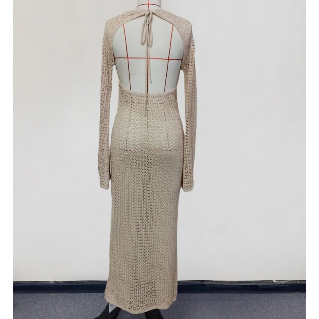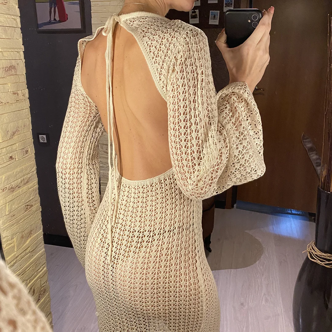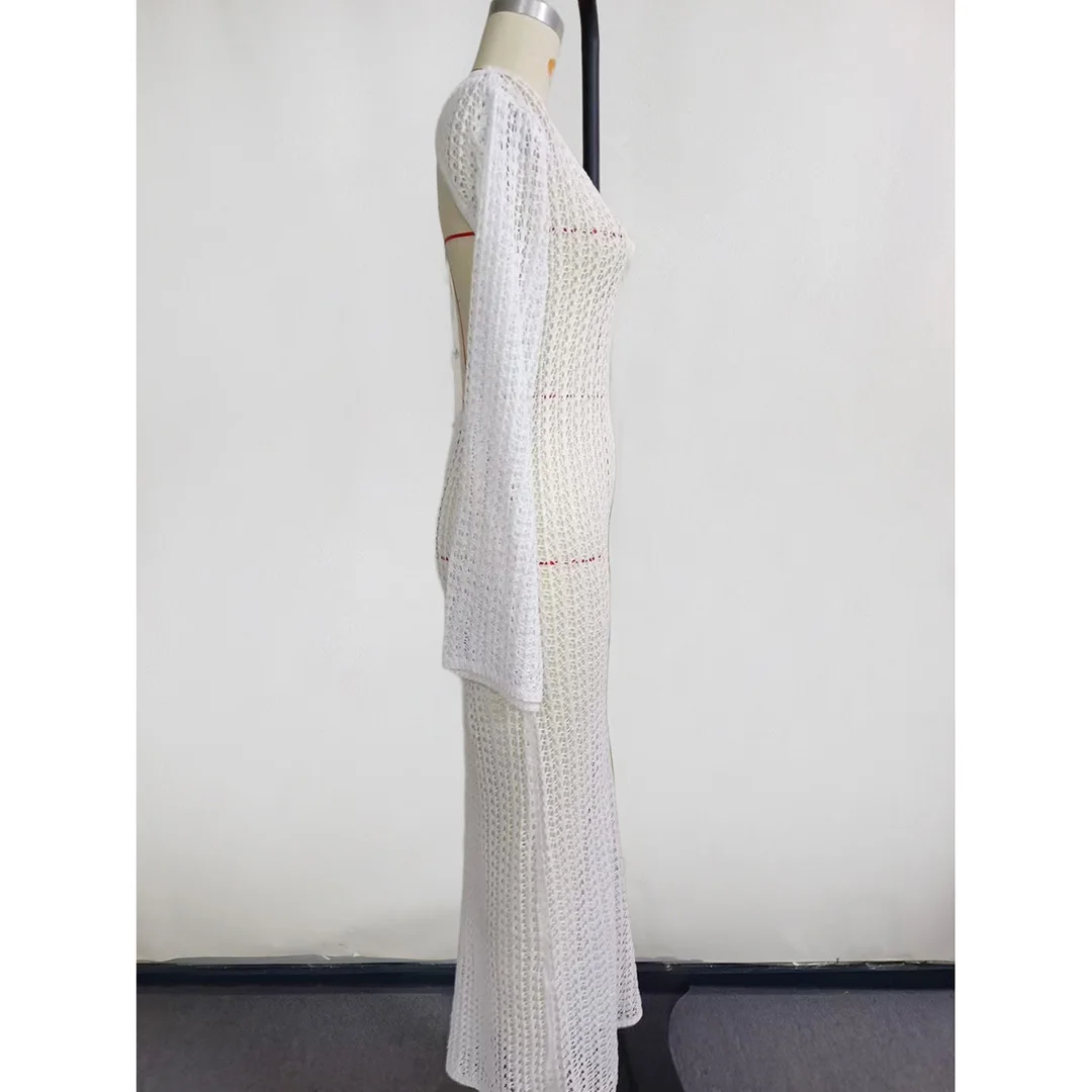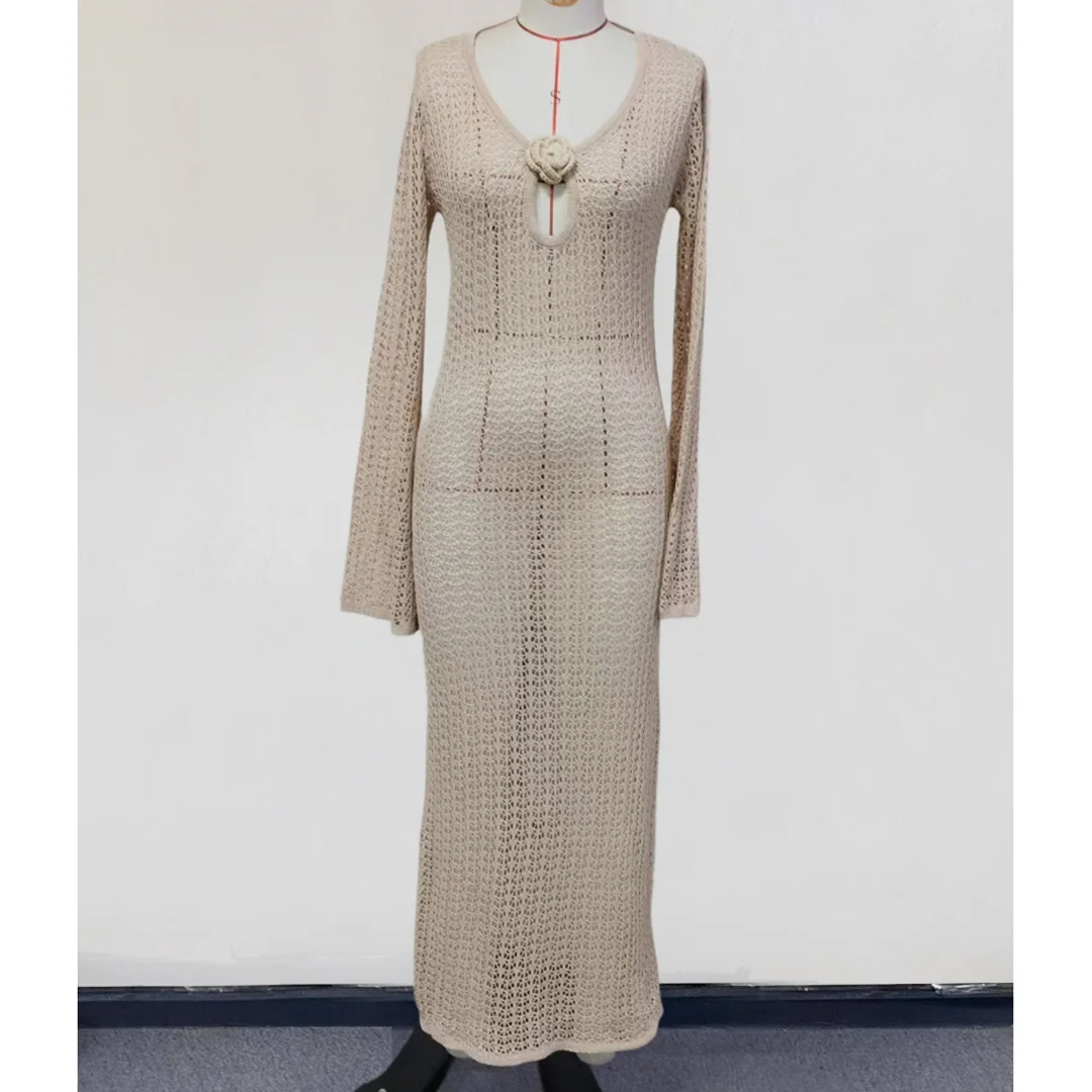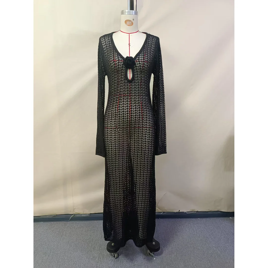 3D Flower V Neck Long Sleeve Crochet Knitted Tunic Beach Cover Up Cover-ups Beach Dress Beach Wear Beachwear Female Women V5852
