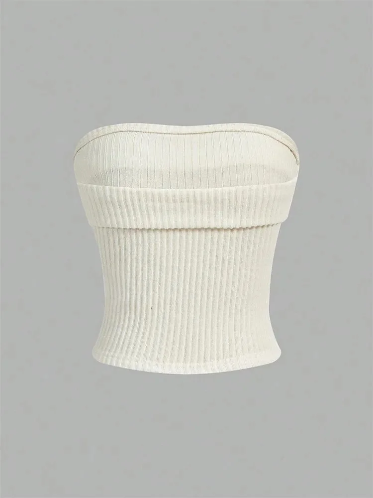 Women Rib-knit Tube Top Summer 2024 Y2K Clothes Grunge Punk Solid Strapless Sleeveless Slim Fit Crop Top Tank Tee Streetwear