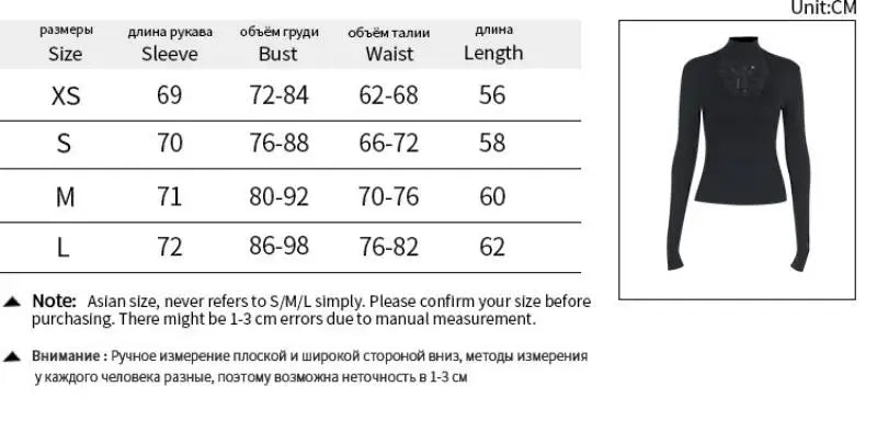 Women Turtleneck Gothic Dark Cross Hollow Out T-shirts Long Sleeve Black Casual Slim Fit Pullovers Harajuku See Through Y2K Tops