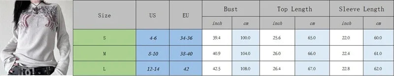 Women Y2k Fairy Grunge Shirt Vintage Graphic Print Long Sleeve Tee Shirt Tops Teen Girls Grunge Aesthetic Clothes Streetwear