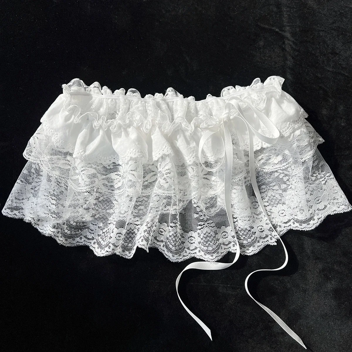 Women Y2K Korean Lace Mini Layered Skirt Streetwear Lace Up Ruffles Harajuku High Waist Pleated Ladies Jupe Skirts Clothes