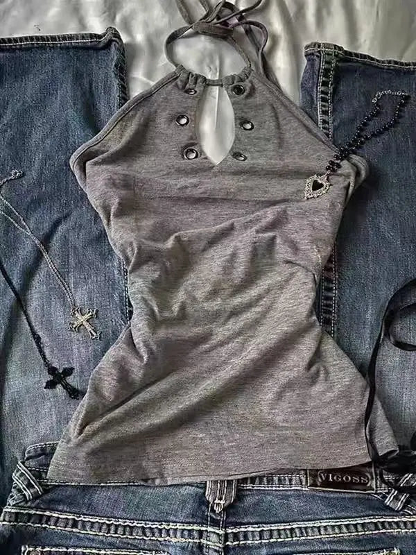 Women Y2K Summer Vintage Casual Harajuku Sweet Spicy Tees Sleeveless Aesthetic Slim Fit Tank Crop Tops 2000s Alt Clothes
