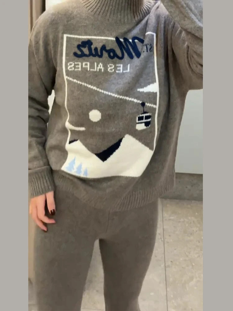 Model Number: Ski Printed Pullover Sweater Pants Suits For Women New Streetwear