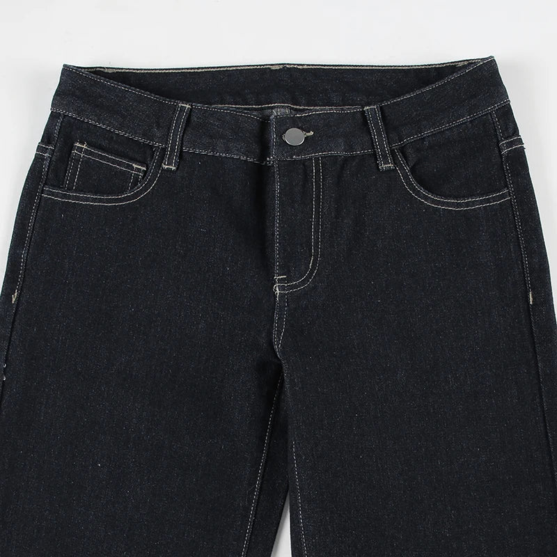 Women's Slim Fit Flared Jeans Y2K Vintage Low Rise Stretch Denim Pants with Embroidery Distressed Style for Everyday Outfits