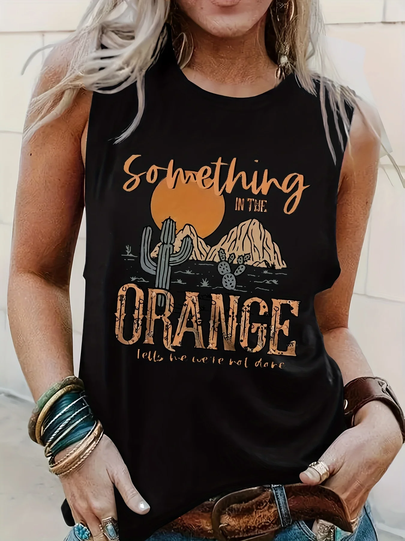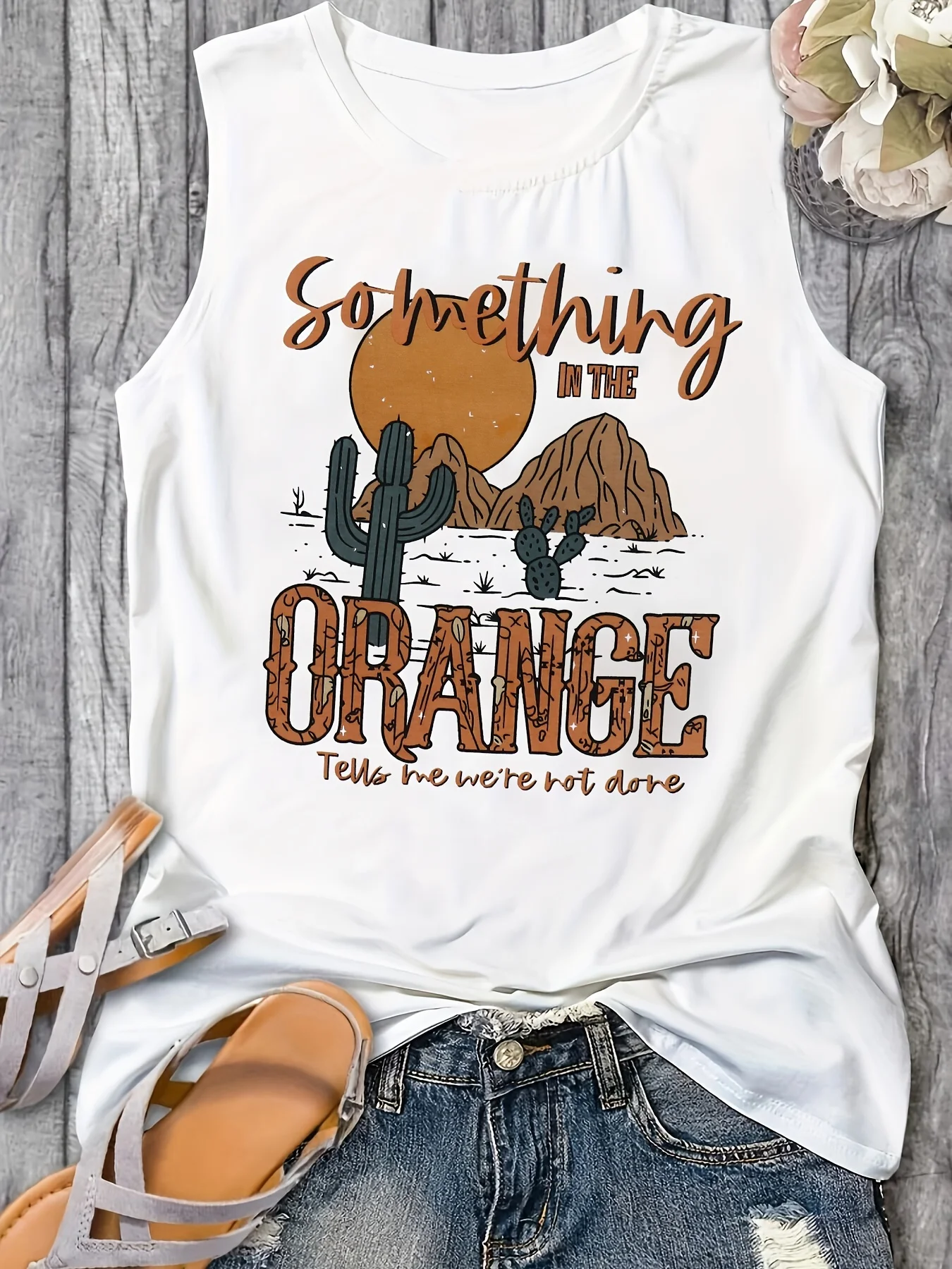 Women's Summer Cactus Letter Print Loose Large Breathable and Comfortable Sleeveless Tank Top T-shirt Streetwear Oversized O