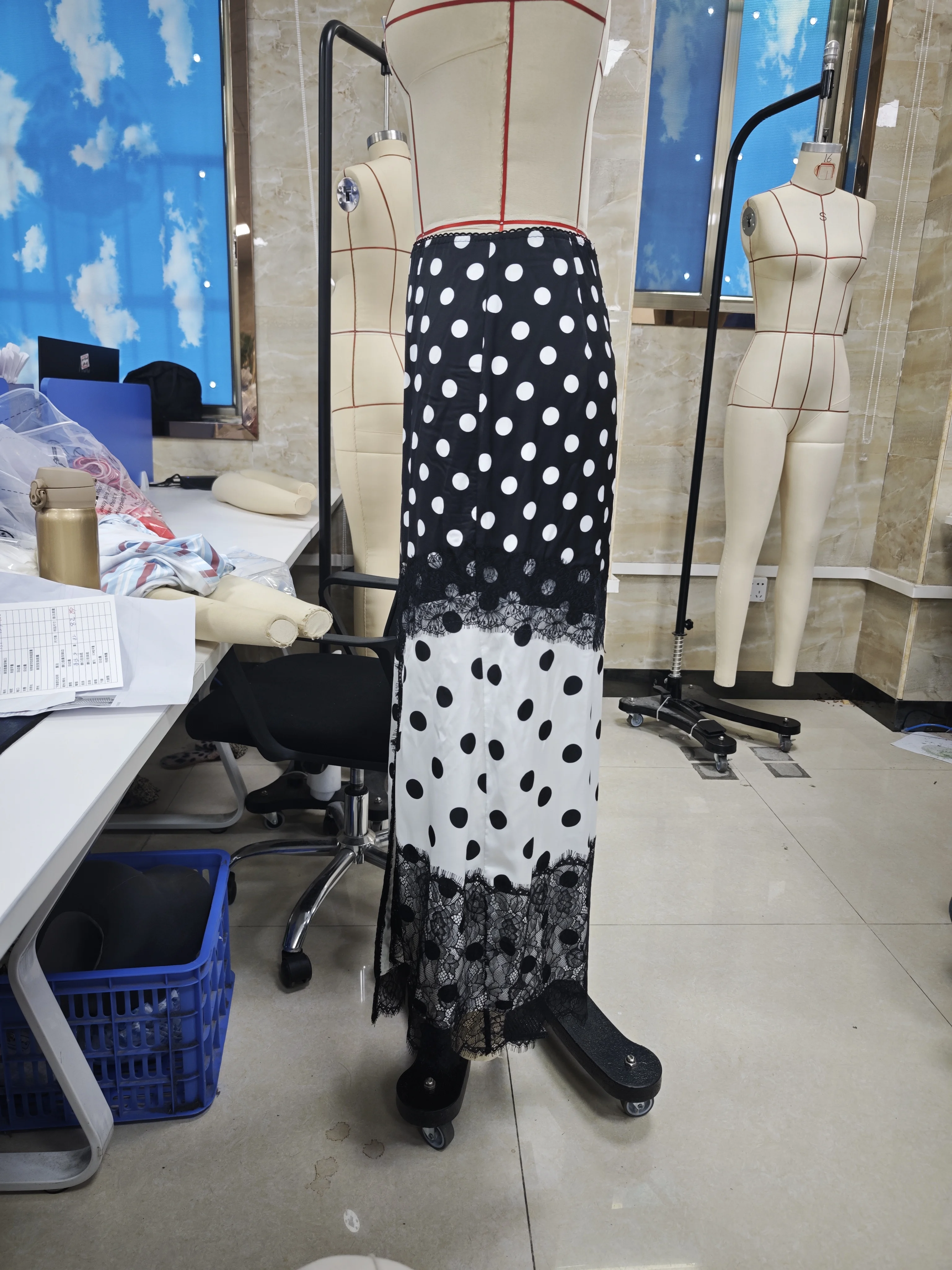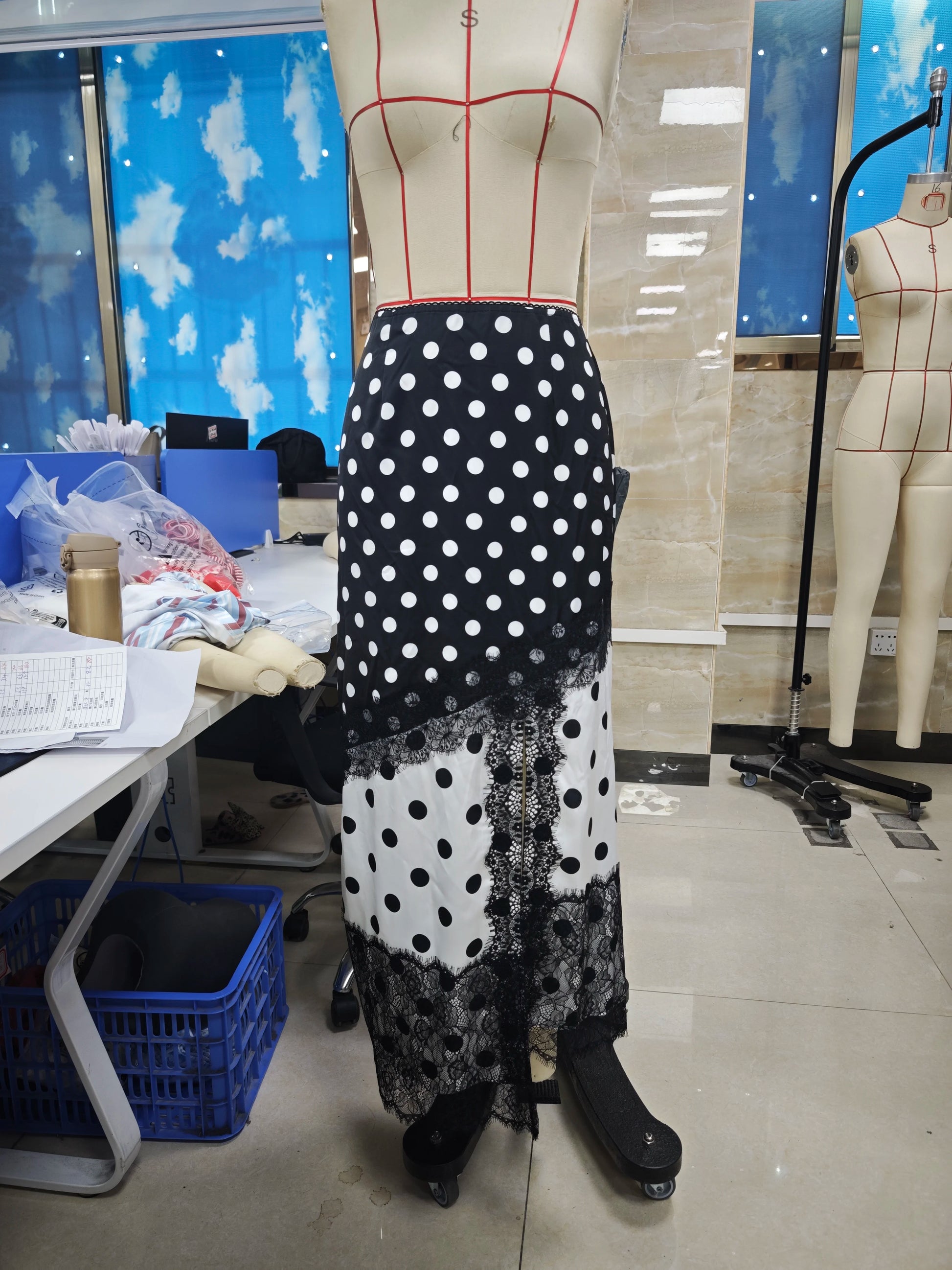Women's Summer Long Satin Skirt Dot Print Lace Trim Split Hem Skirt for Travel, Beach, ShoppingSize (cm):
