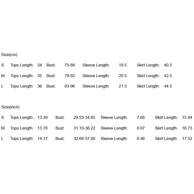 S Tops Length: 13.39 Bust: 29.53-34.65 Sleeve Length: 7.68 Skirt Length: 15.94