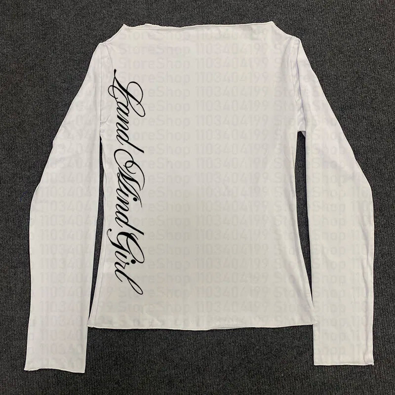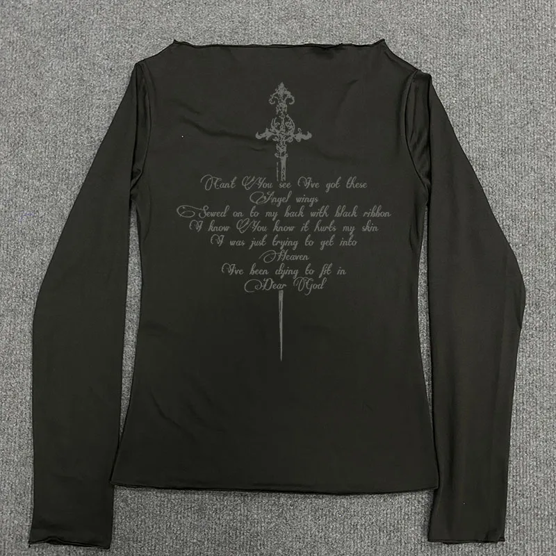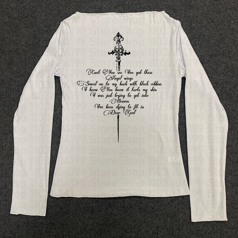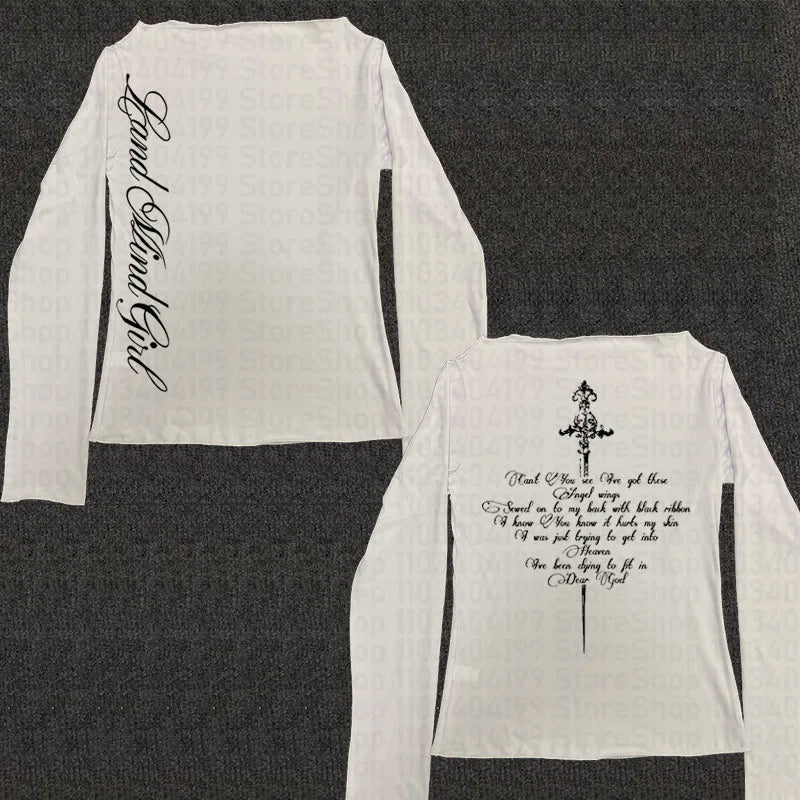 Y2k Aesthetics Crop Tops Graphic Printed T Shirt Fairycore Grunge Clothes Korean Fashion Harajuku Gothic Streetwear Long Sleeves