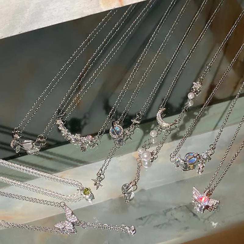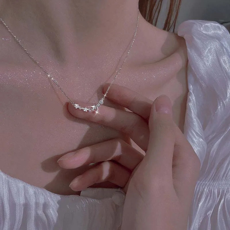 Y2K Shiny Star Necklace for Women Girls Silver Color Crystal Pendant Clavicle Chain Necklace Set Fashion New Trendy Party