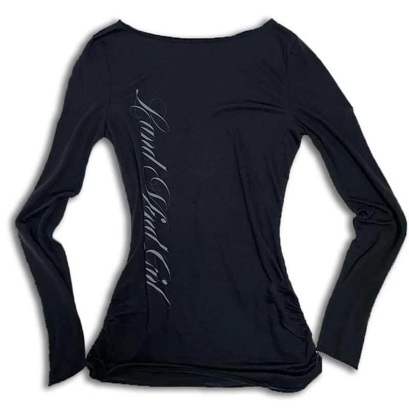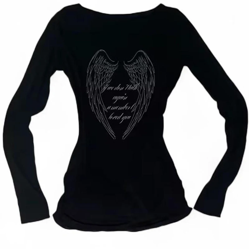 Y2k style aesthetic sweet and sexy long sleeved top for women's casual gothic punk printed T-shirt Harajuku Grunge clothes Emo
